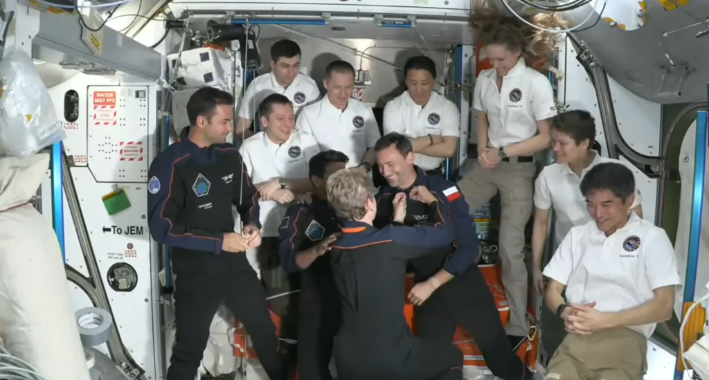 Nasz astronauta miał także okazję rozmawiać prosto z orbity z przedstawicielami polskiego rządu oraz z dziennikarzami podczas konferencji prasowej, kiedy to odpowiadał na ich pytania. Załoga Ax-4 kilkukrotnie łączyła się także z Axiom Space, na tzw. mission updates, gdzie opowiadali o swoich dotychczasowych badaniach a także… jedli pierogi.